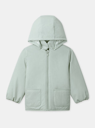Designed for curious children who enjoy the outdoors in mid-season, it provides lightweight warmth. Its ripstop design, removable hood, and jersey lining ensure comfort and durability. The inner floral print and glove loops add a practical and poetic touch.