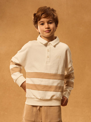For children with a refined style, perfect for mid-season. The polo-style fleece is comfortable. The beige stripes create a retro look.